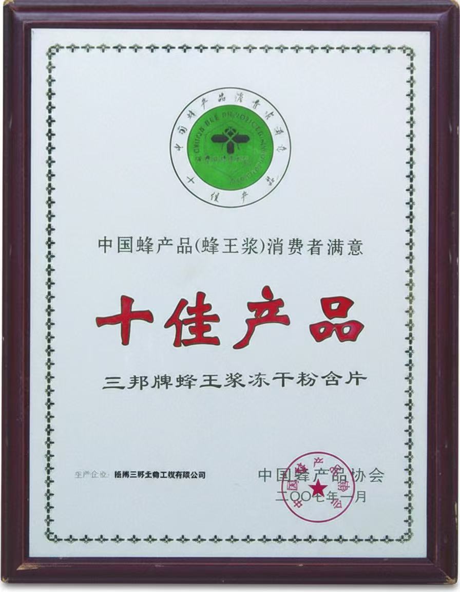 • 中國(guó)蜂產(chǎn)品消費(fèi)者滿(mǎn)意十佳產(chǎn)品